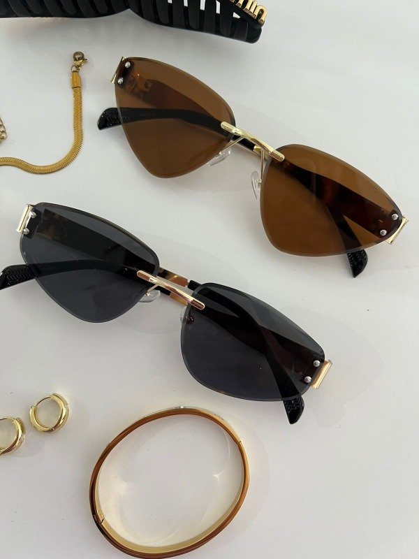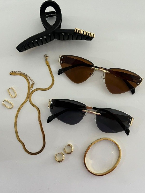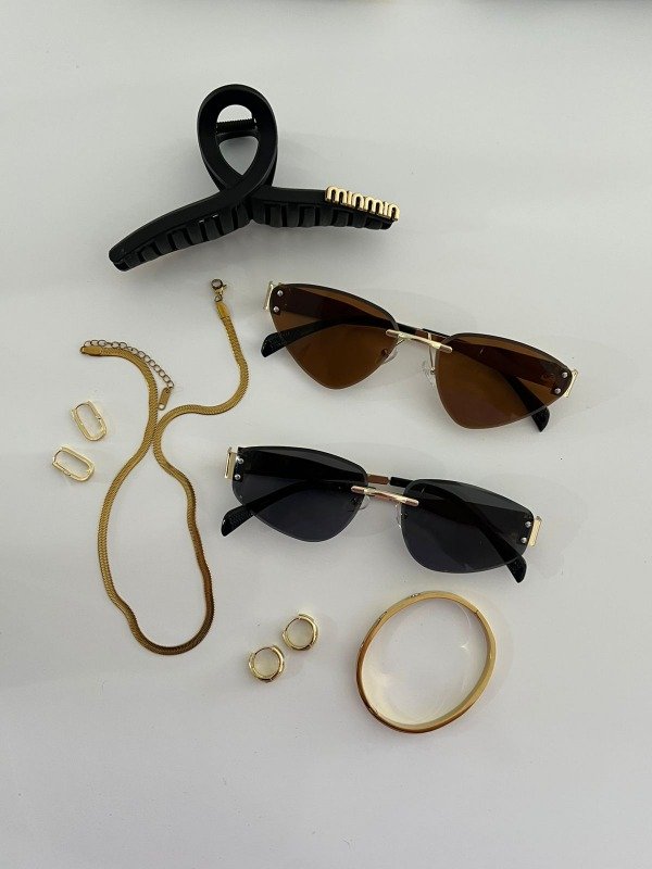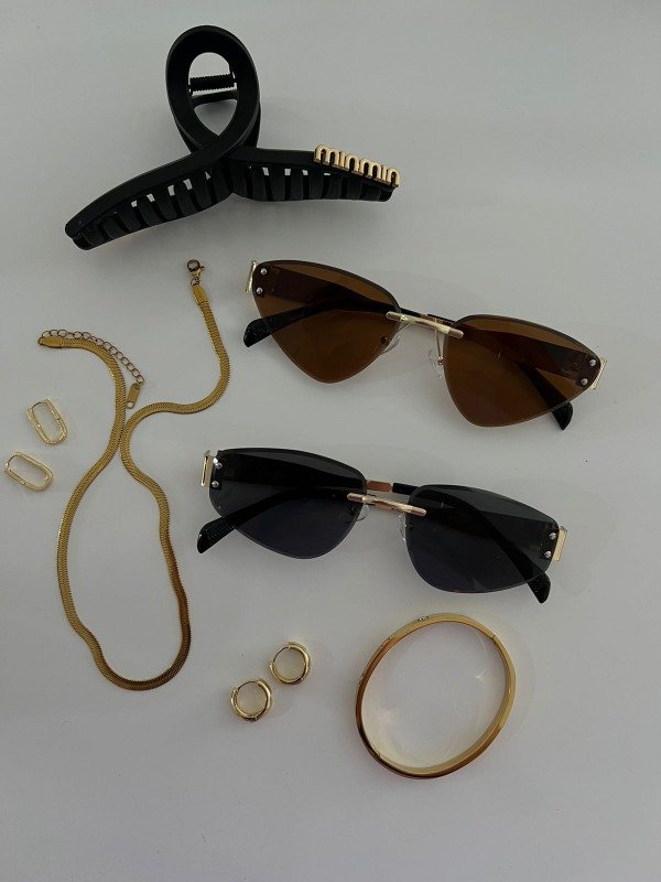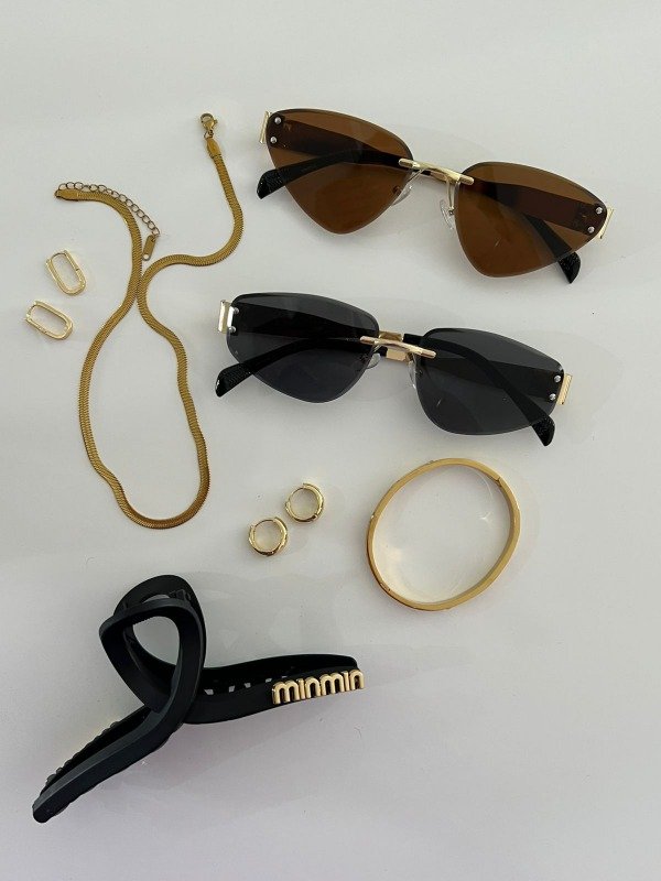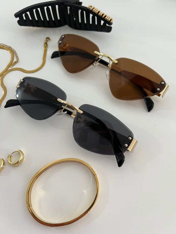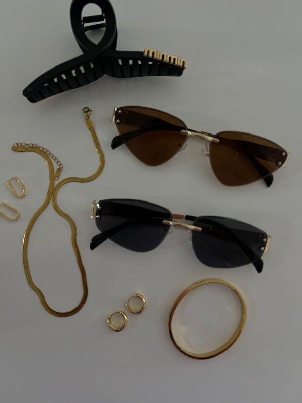 LENTES DE SOL TRIANGULARES CON MARCO DORADO
