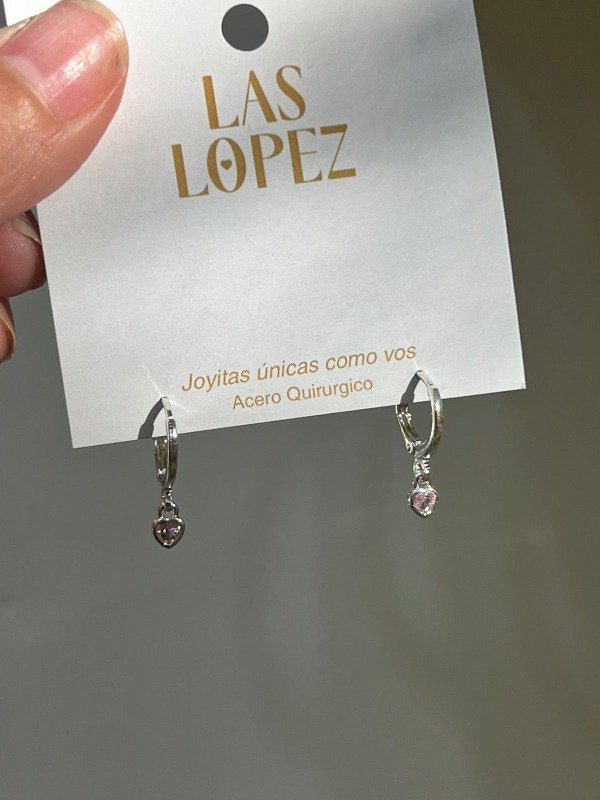 Aros Dije Corazón Rosa shine