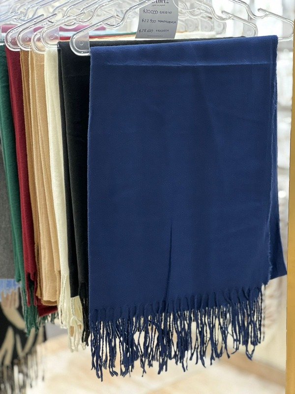 Son de calidad importada, súper suaves al tacto (cero picosas 🙌) y vienen con delicados flecos que le dan ese toque canchero y elegante a la vez.