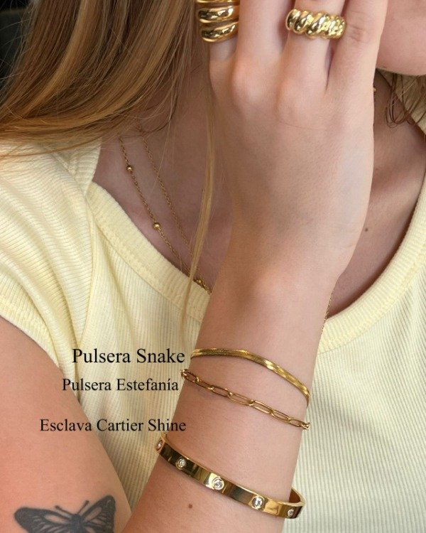 Nuestras joyas de acero quirúrgico dorado 316L están pensadas para acompañarte todos los días. Son resistentes al agua, hipoalergénicas y no se oxidan fácilmente.